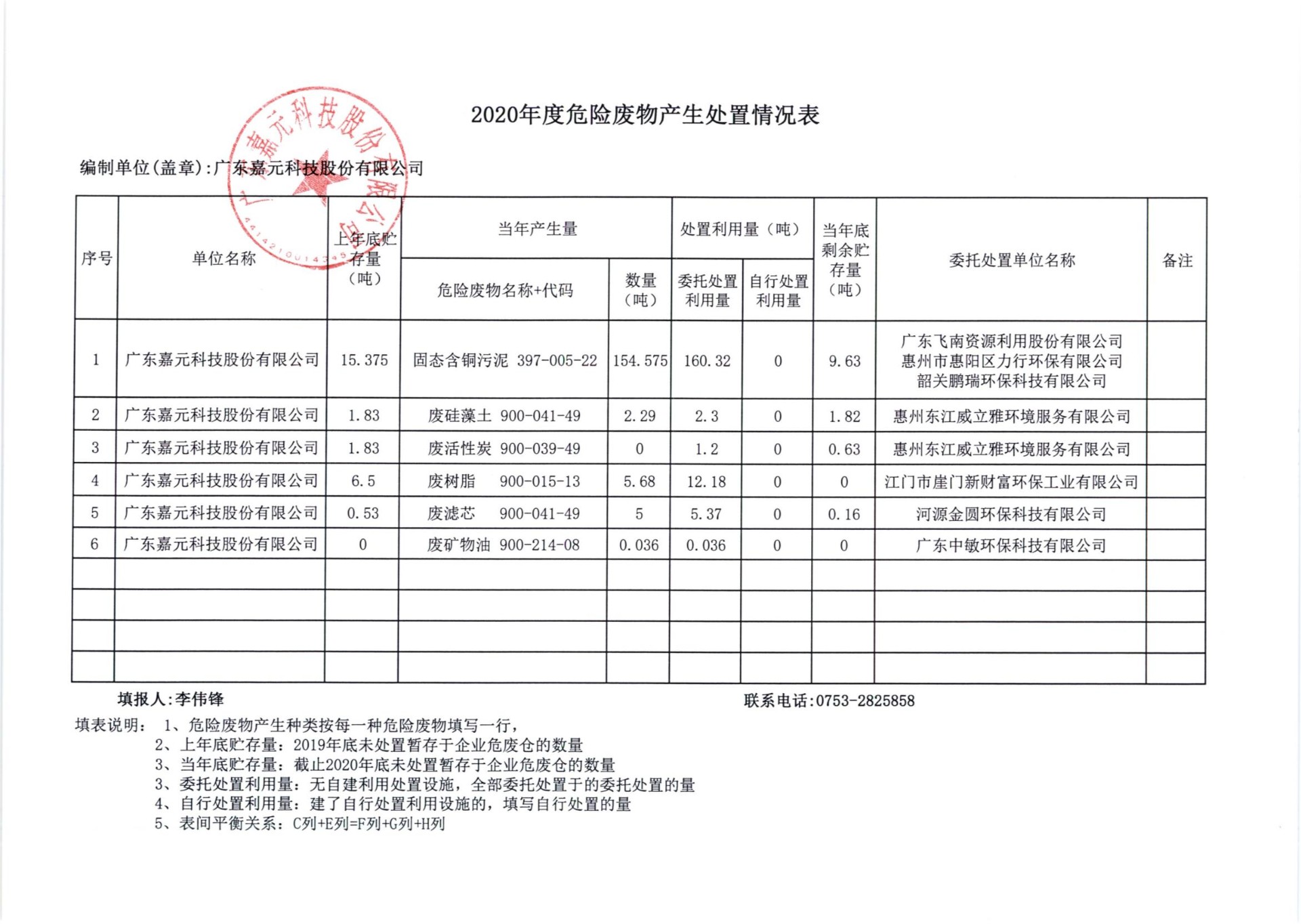 广东嘉元科技股份有限公司现将国家排污许可证中固废污染防治信息进行公示。